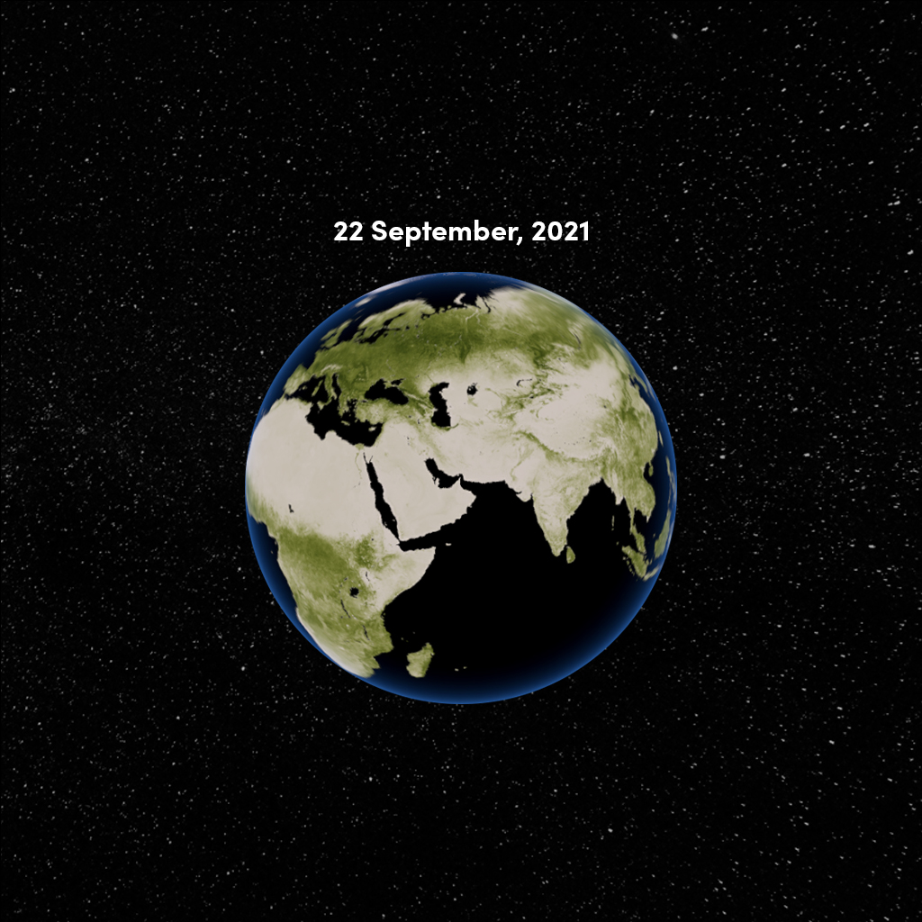 Here’s a snapshot of Earth's vegetation at the autumnal equinox. Which areas of the world have a higher concentration of vegetation, and which areas have a lower concentration? Do you see any extreme highs and lows?